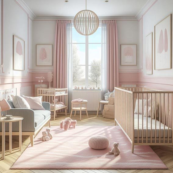 Una stanza dipinta in tonalità di rosa pastello è un ambiente avvolgente che trasmette calma e tranquillità. Questo colore delicato è spesso associato all’affetto e alla dolcezza e crea un’atmosfera amorevole perfetta per i primi mesi di vita dei piccoli neonati.