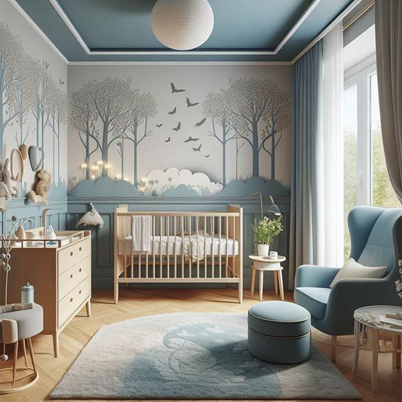 L’azzurro pastello, d’altra parte, è noto per la sua connessione con la serenità e la pace. Utilizzare questa tonalità nella cameretta del neonato può contribuire a creare un ambiente rilassante, ideale per favorire il sonno e il riposo.